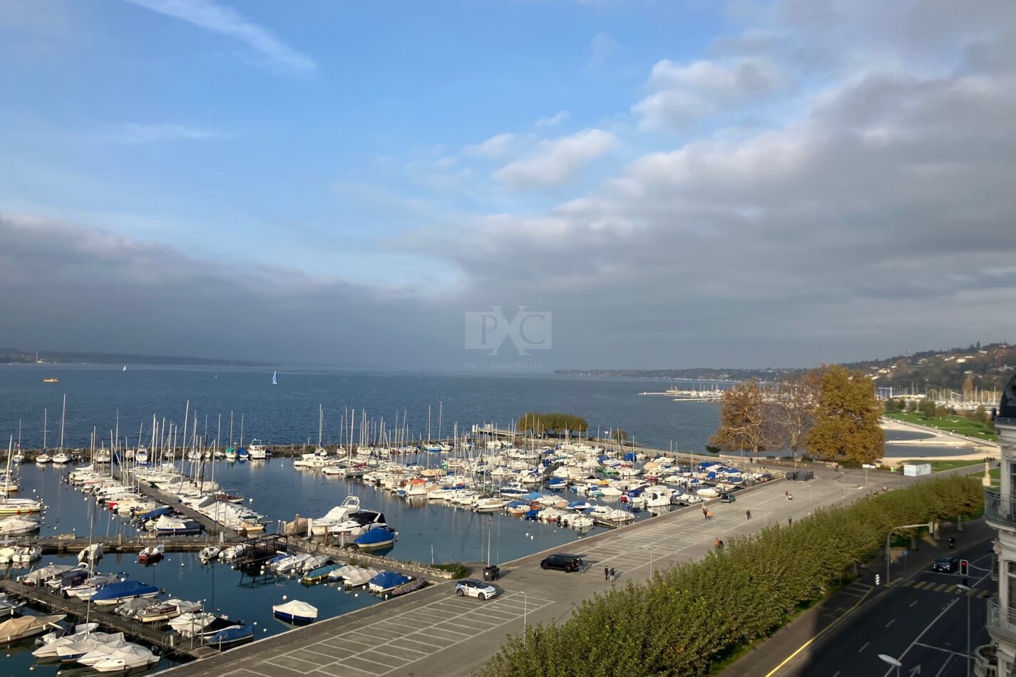 Dans un immeuble résidentiel de luxe aux imposantes façades d’apparat, magnifique appartement de 284 m² + 12 m² balcons donnant sur le lac et les montagnes environnantes.